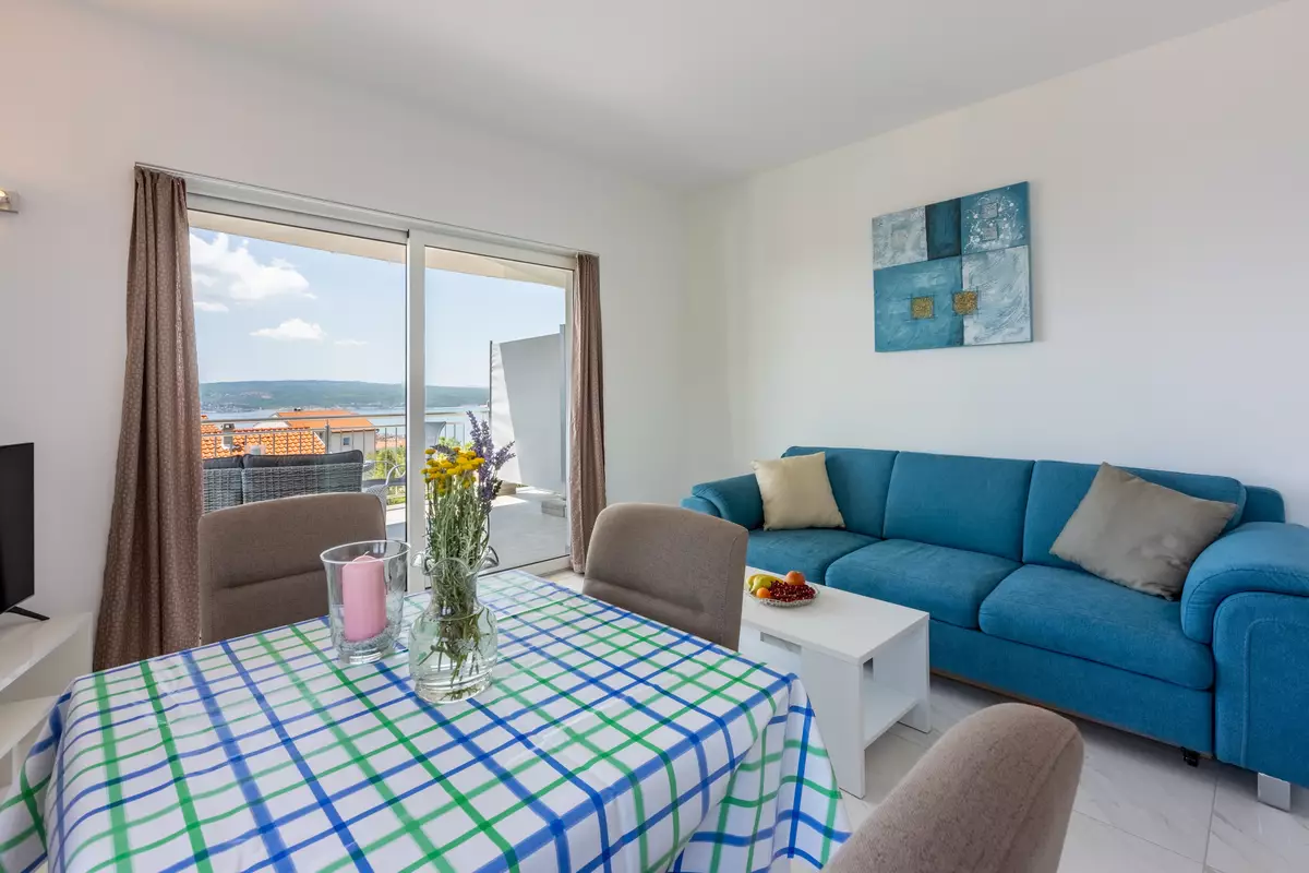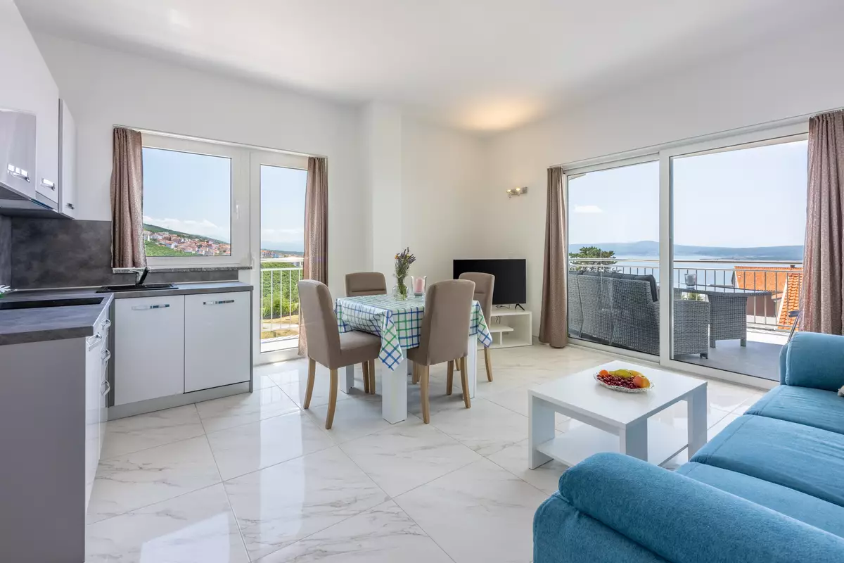 Vom Wohnbereich aus hat man einen direkten Zugang zu dem Balkon dieser Wohnung welcher über einen traumhaften Meerblick verfügt.