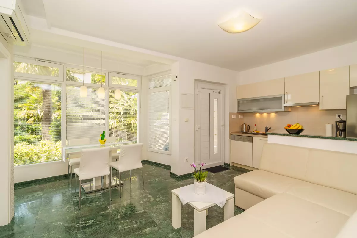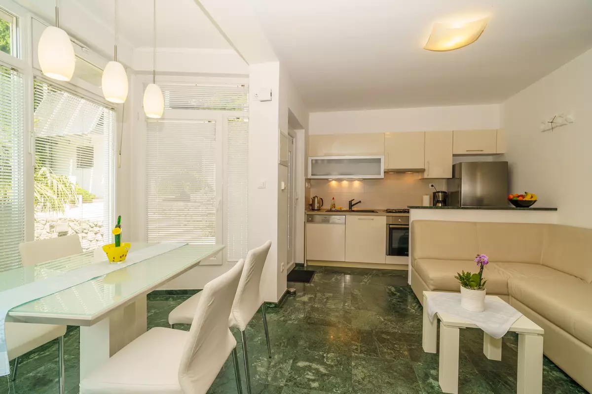 Wohn/Esszimmer und Küche sind ein Raum, Terrasse, Meerblick, Fliesen, Sat-TV