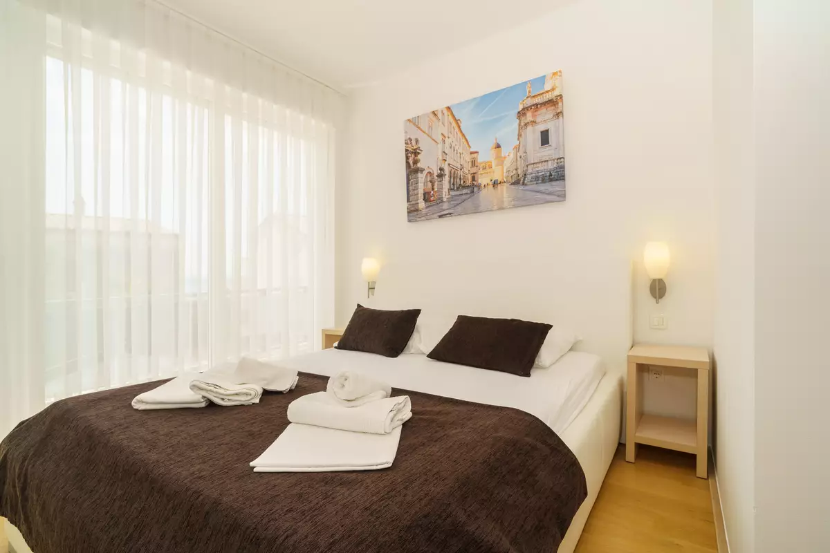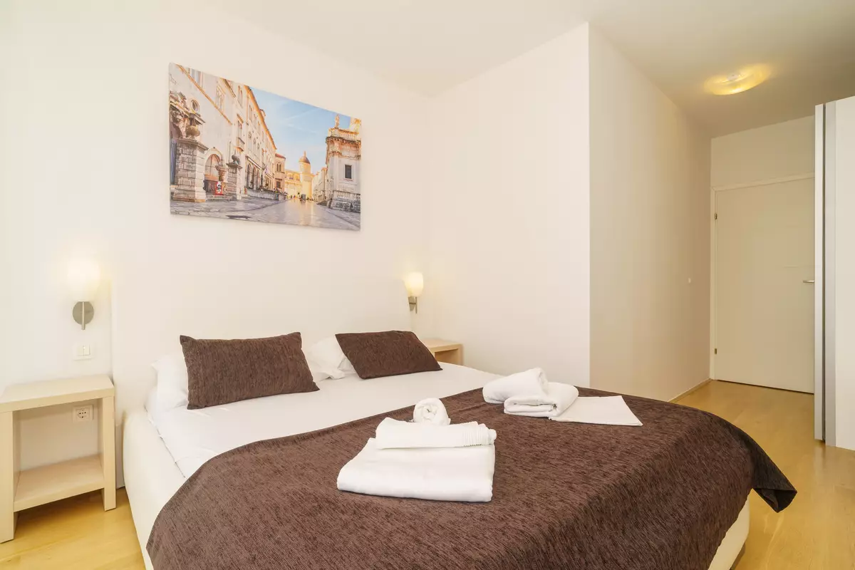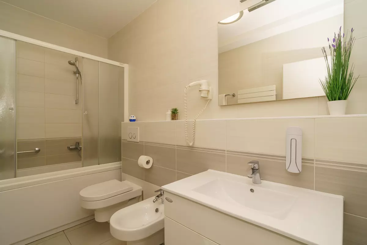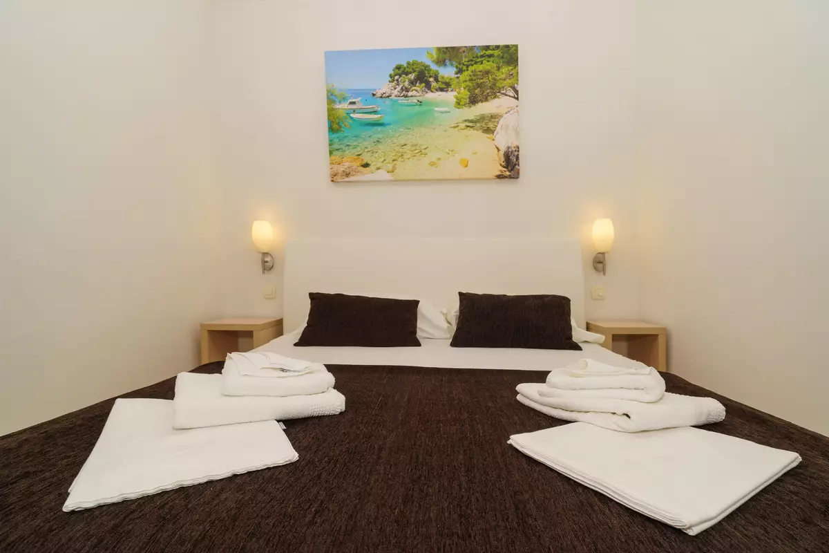 Ausstattung Wohnbereich Wohn/Esszimmer und Küche sind ein Raum, Terrasse, Meerblick, Fliesen, Sat-TV Küche Geschirr, Küchenhandtücher, Elektro/Gasherd kombiniert, Kochplatten: 4, Backröhre, Kühlschrank mit Gefrierfach, Filterkaffeemaschine, Wasserkocher, Toaster, Geschirrspülmaschine Schlafzimmer Doppelzimmer mit Doppelbett Doppelzimmer mit Doppelbett Badezimmer Bad mit WC, Badewanne separates WC Balkon & Terrasse eigener Balkon, teilw...